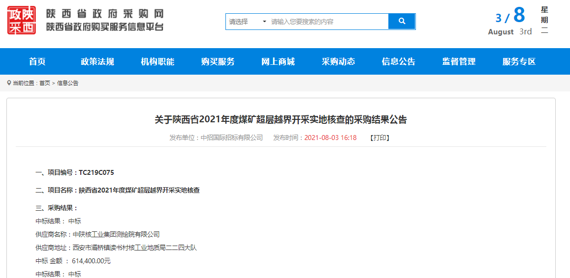 測繪院成功中標(biāo)陜西省2021年度煤礦超層越界開采實地核查項目 -